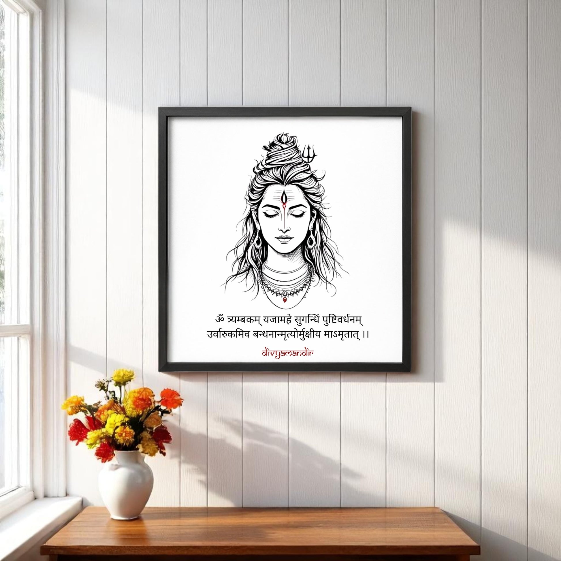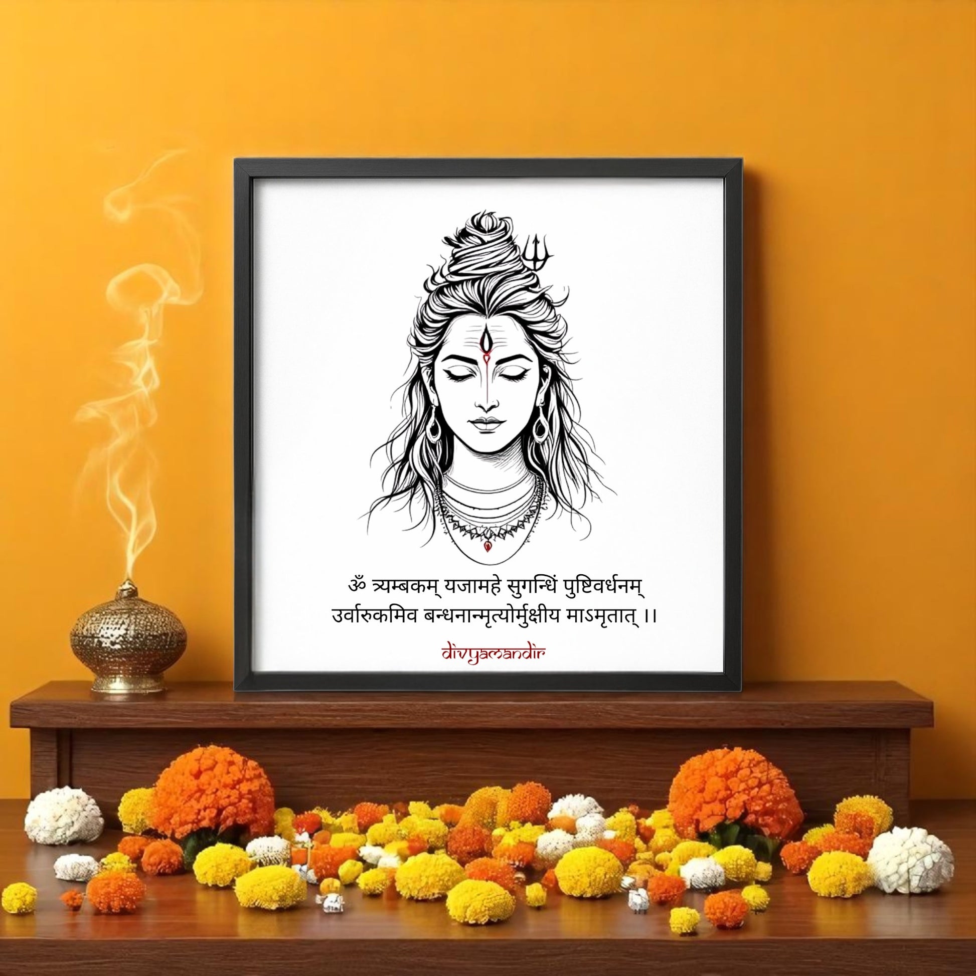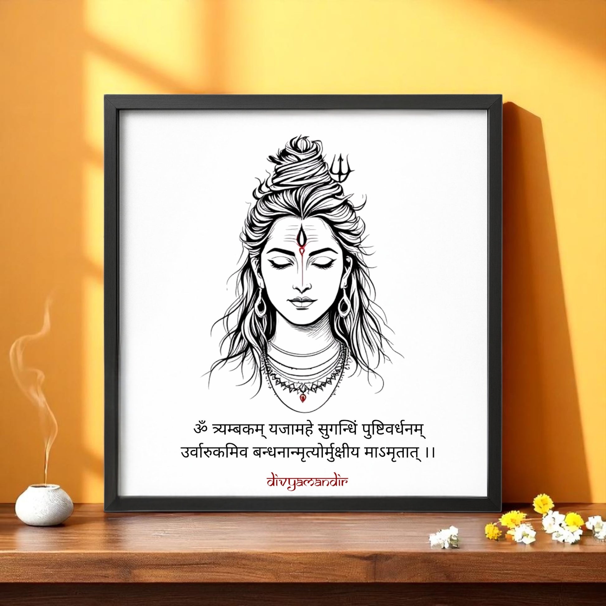 Shiva Mahamrityunjaya Mantra Wall Art – Exclusive Divyamandir Design (Available in 17x17 and 13x13 Frames)
